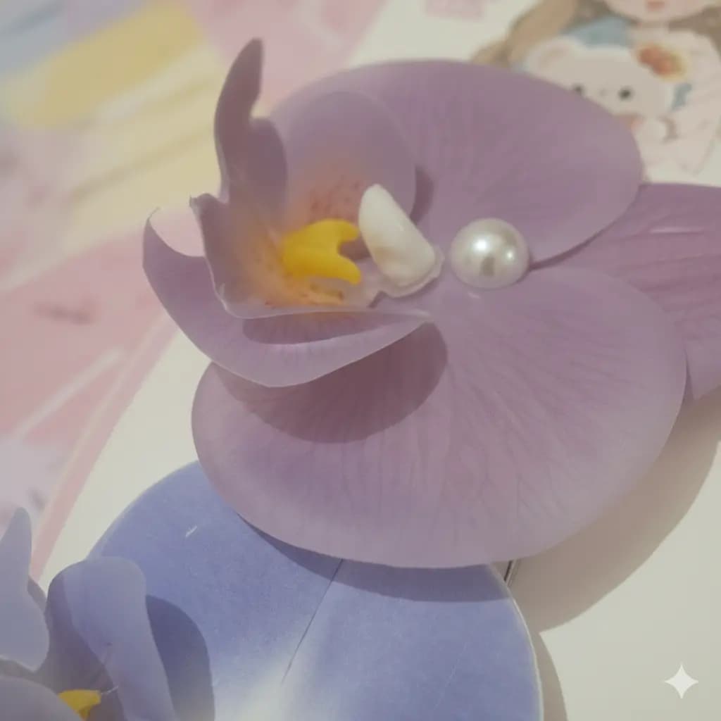 Pastel Orchid Flower Hair Clip with Pearl Accent
